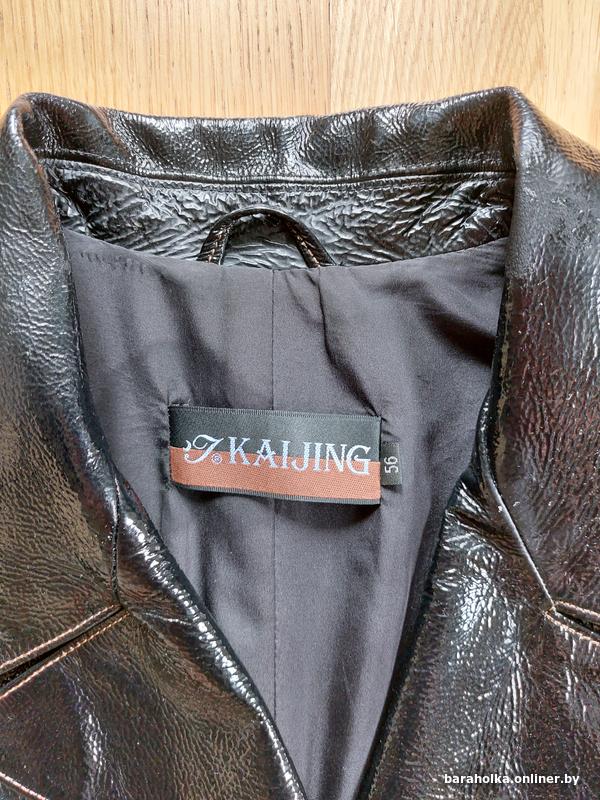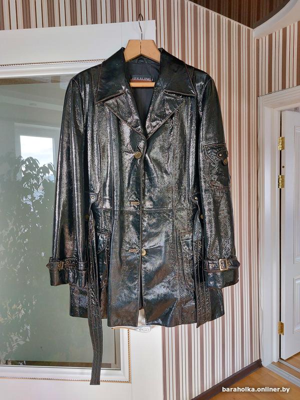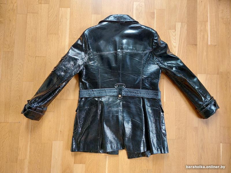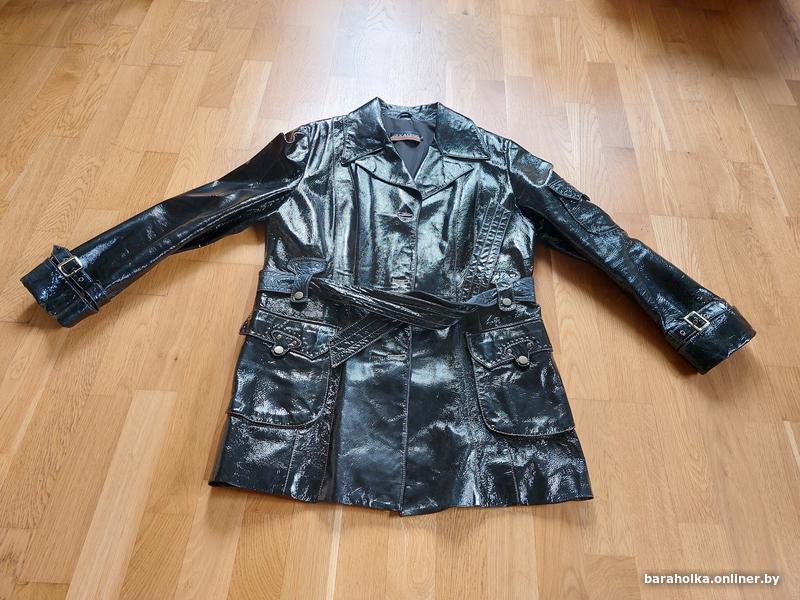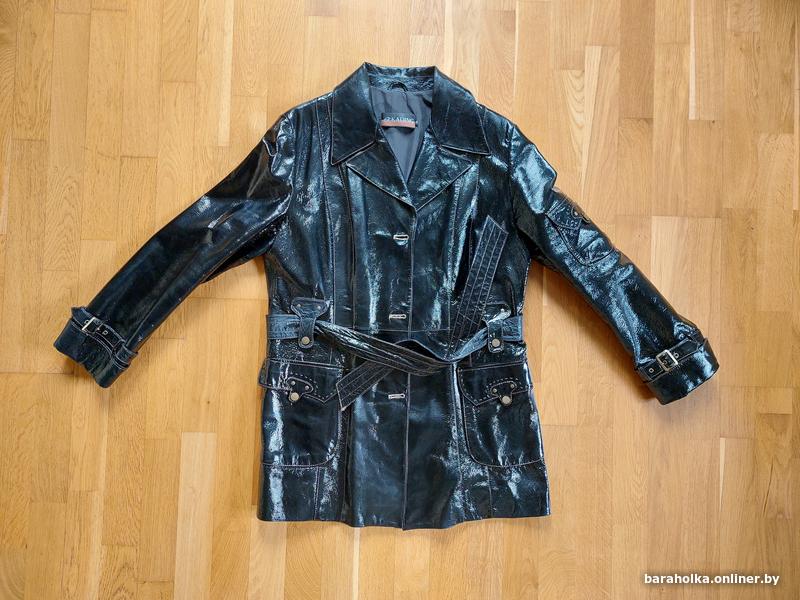 Демисезонная кожаная женская куртка под лаком. Размер (указан на бирке) - 56. Подробные замеры: длина - 85 см, полуобхват груди - 52 см, полуобхват бедер - 54 см, рукава - 64 см. Материал - натуральная кожа (под лаком). С карманами и поясом. Отличное состояние. Только самовывоз.