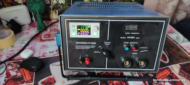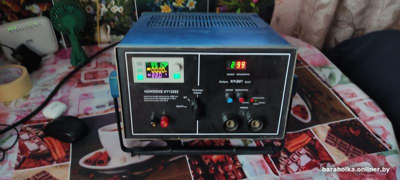 Прибор делался для себя.0-125вольт 0-22 ампера, мощность 0-2000вт. Трансформатор болгарский ещё времён СССР на 1200 Вт, но при 80в выдает 20 ампер, при напряжении в сети 230в. Благодаря активному охлаждению может работать постоянно. Микропроцессорное управление исключает выход из строя при нештатных режимах работы. Аккумуляторы варил только 18650 лентой 0.3, больше ничего не пробовал. Намотка сварочника 35мм2 6 витков. Сделано добротно. Стоит без дела. Продаю почти по цене комплектующих. Вес 22 кг. Не торгуюсь, не надо - не берите. 20 км от Минска по Могилевской трассе.
