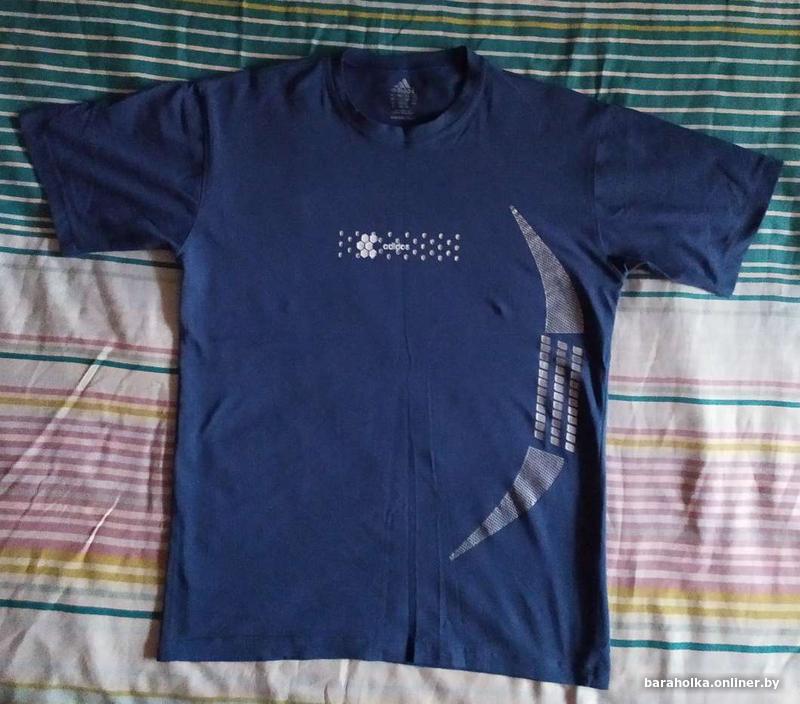 футболка adidas, размер S, синяя, под мышками 47см, длина по спине 61см, по плечам 42см, в хорошем состоянии