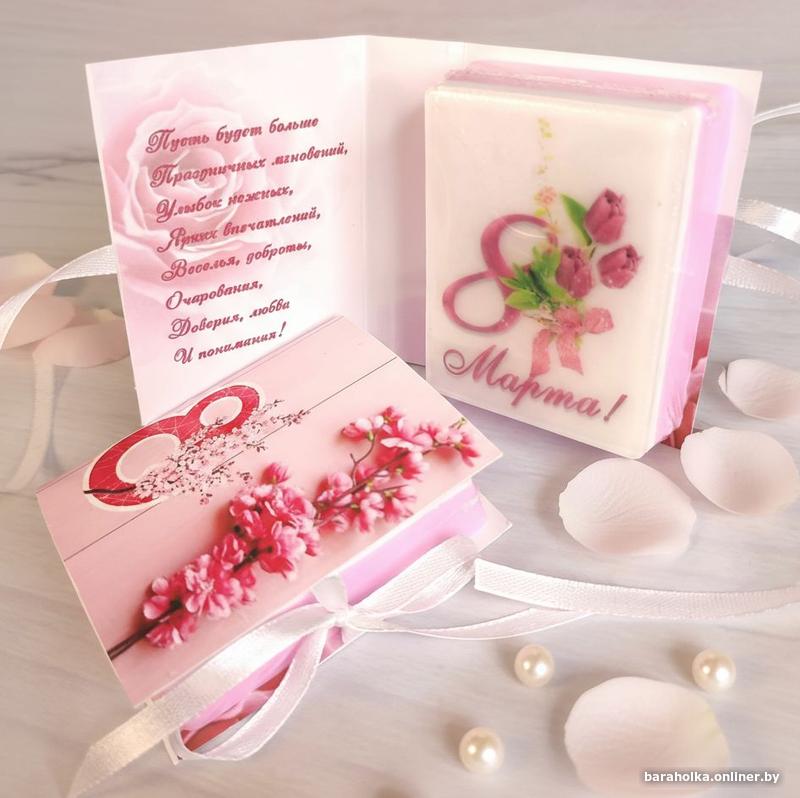 Что подарить на 8 Марта? Каждый год приходится придумывать что-то новое, чтобы поздравить женщин на работе, девочек в детском саду, ну и любимую жену или девушку в конце-концов! Цветы конечно отличный вариант, но эти 3 тюльпана, которые вечером завянут... Что ещё можно придумать? Кажется за столько лет уже всё передарили и новые идеи не приходят в голову? Обратите внимание на сувенирные наборы и букеты из мыла ручной работы. Это прикольные и недорогие подарки к 8 марта. Цены от 7 рублей (особо актуальна стоимость для мужчин, работающих в больших женских коллективах