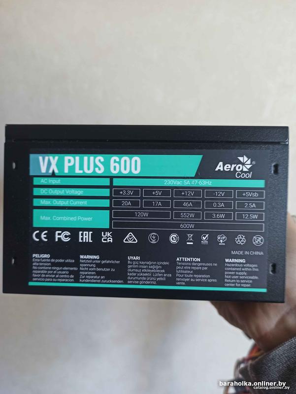 ATX 600 Вт, вентилятор 1x120 мм, 1x 12В 46А