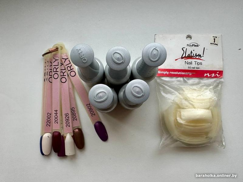 Продаются одним лотом 5 НОВЫХ ГЕЛЬ-лаков ORLY + упаковка типсов (50 ШТУК ТИПСОВ В УПАКОВКЕ!) + палитра из 10 цветов (цвета другие не эти ))), но может быть кому нужно как прилагаемое (может не поленитесь смыть цвета, это обычные лаки на палитре, не гель)