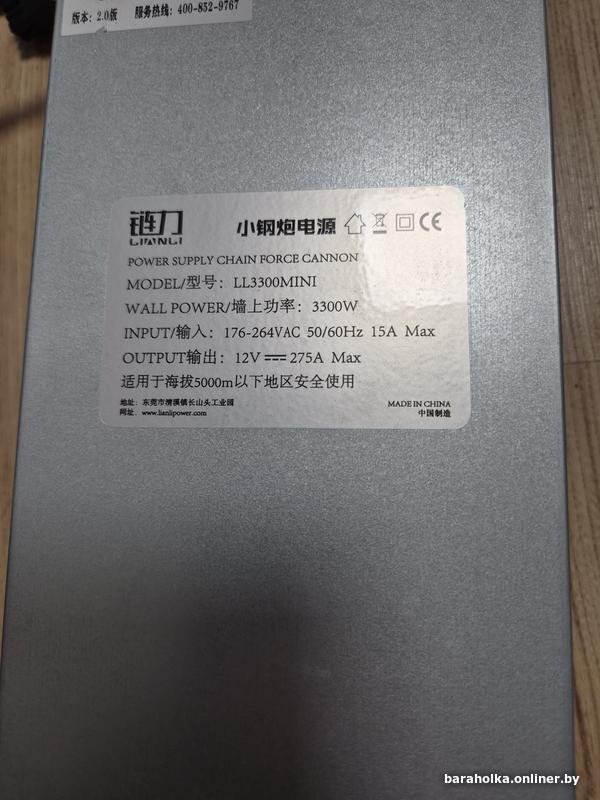 Вход: 176–264 В переменного тока, 50/60 Гц, макс. 15 А.