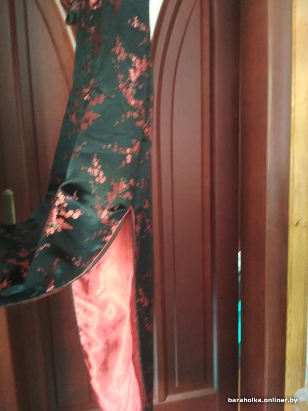прекрасное шелковое национальное платье Китай-Япония кому как нравится в прекрасном состоянии-размер 42-длина=150см-ширина в талии=45см. по бокам разрезы-изнутри ярко-красного цвета100%шелк=150р.