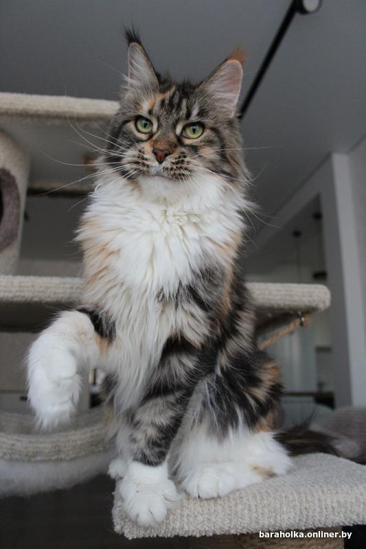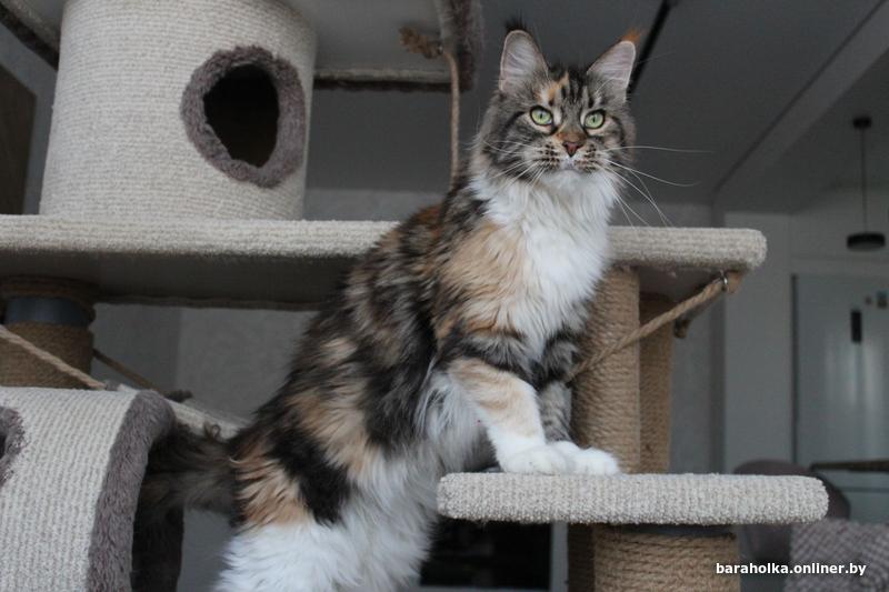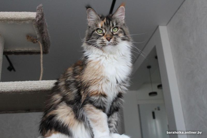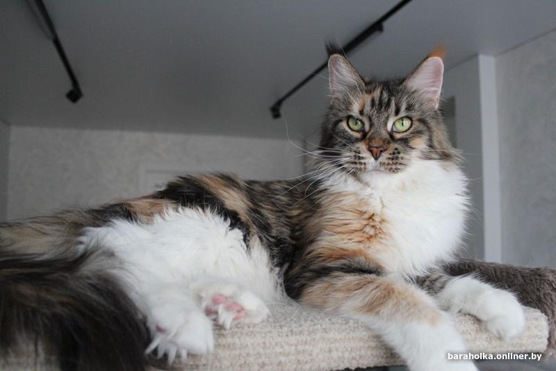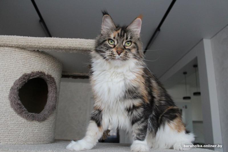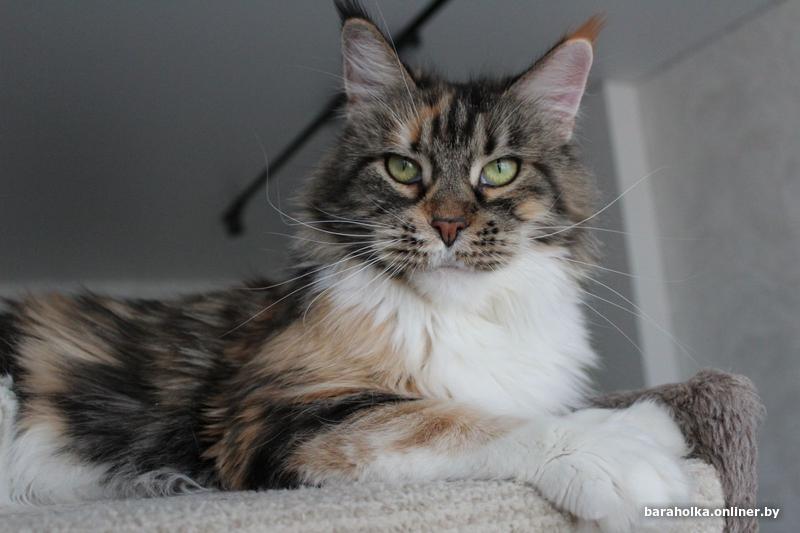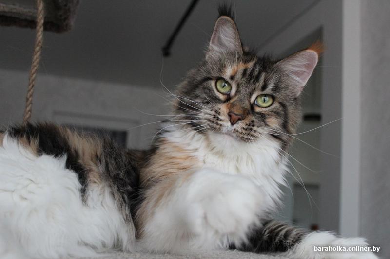 Взрослая кошка мейн кун (7 лет) ищет новый дом. Девочка является чемпионом породы и обладает прекрасными породными данными: огромным размером, шикарными рысьими кисточками, шерсткой яркого черепахового мраморного с белым окраса. Кошка выведена из разведения, чистоплотна, стерилизована, очень ласковая и покладистая. Отдается в качестве домашнего любимца только в самые заботливые и ответственные руки. Подробнее по телефону.