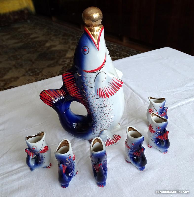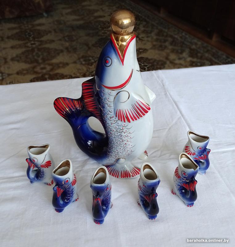 Продам набор - Графин с рюмками - Рыбы. Времен СССР.