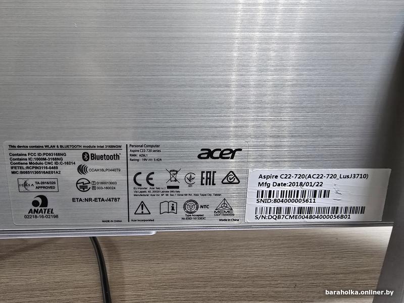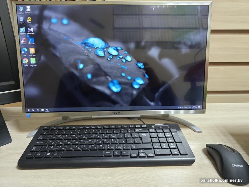 Отличное состояние. Все работает исправно. Моноблок,клавиатура проводная ACER, мышь беспроводная Canyon, блок питания.
