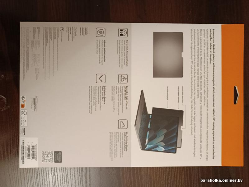 обеспечивает приватность экрана вашего MacBook Air или Pro в людных местах. Благодаря углу обзора 30°, информация остаётся видимой только для человека прямо перед экраном. Это удобно для работы в кафе, аэропортах и коворкингах.