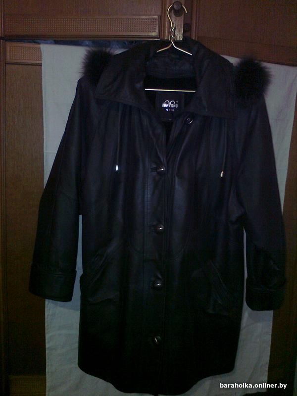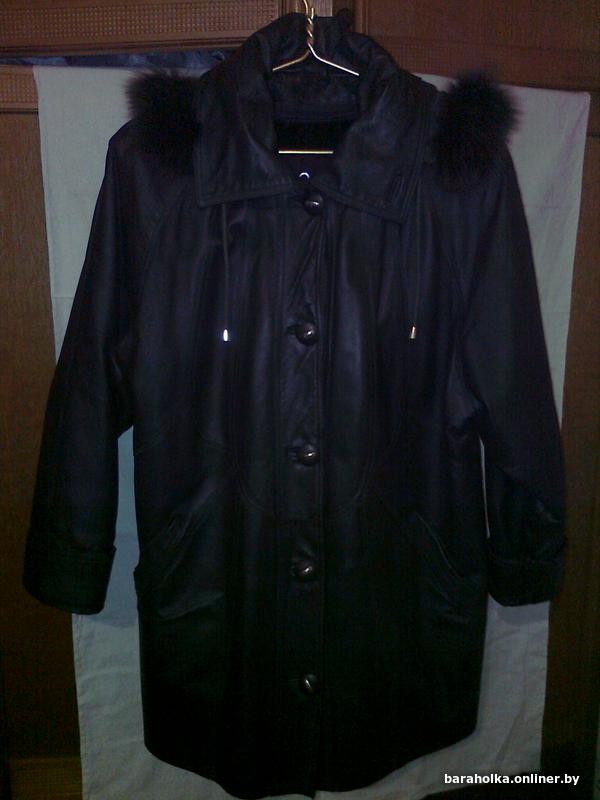 Куртка кожаная женская р-р 6XL. Фирма Hanang Aote. На подстежке. Можно носить зимой как дубленку. Или весной-осенью без подстежки как куртку. Подстежка на замке. Объемный капюшон с мехом натурального песца, отстегивается с помощью замка и капюшон, и полоска меха отдельно. Рукав регулируется манжетой. Оригинальный крой спинки. Удобные карманы. Состояние отличное. Цвет темно-зеленый антрацит. Состав: верх-100% кожа, подкладка - 100% полиэстр, подстежка - 100% вискоза (футер).