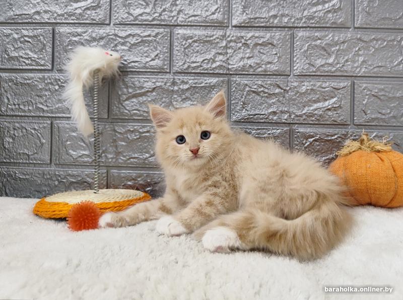 Котенок мальчик 2 мес, метис сибирской кошки. Очень игривый, приучен к лотку, изучает когтеточку.