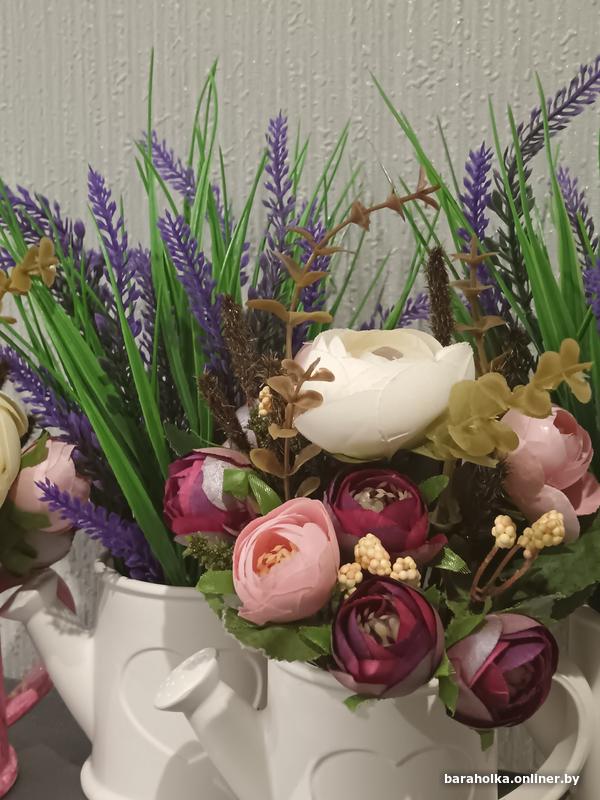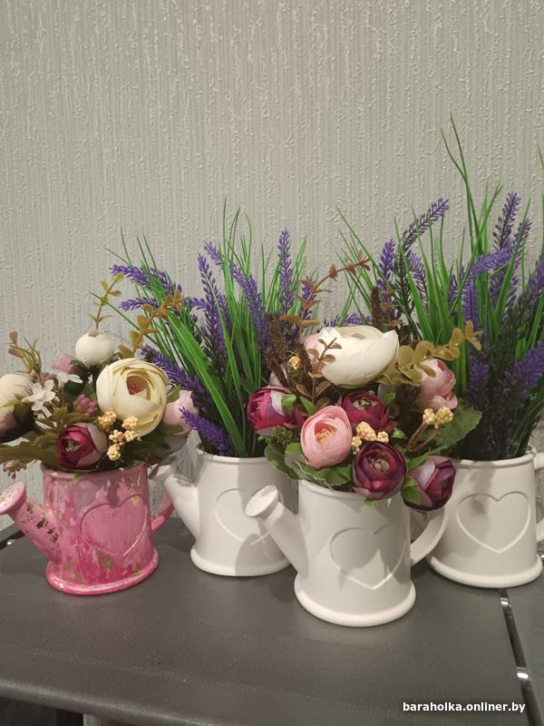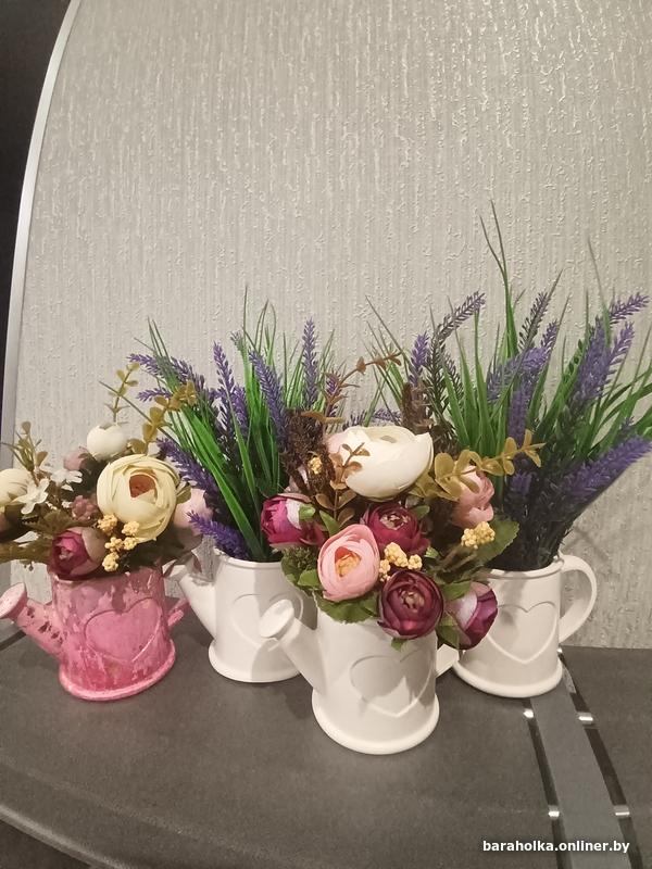 Предагаю композиции из искусственных цветов. В гипсовом кашпо.