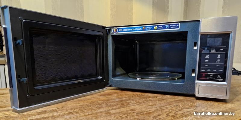 хорошее состояние, отдельностоящая, микроволны, объем 20 л, выходная мощность микроволн 800 Вт, управление электронное, автоприготовление, авторазмораживание, цвет нержавеющая сталь/серый