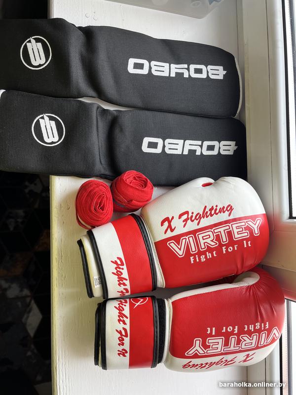 Продам перчатки (10 унций), защиту голени и стопы(размер М) и бинты(3 метра). Надевалось 2 раза и передумала ходить.