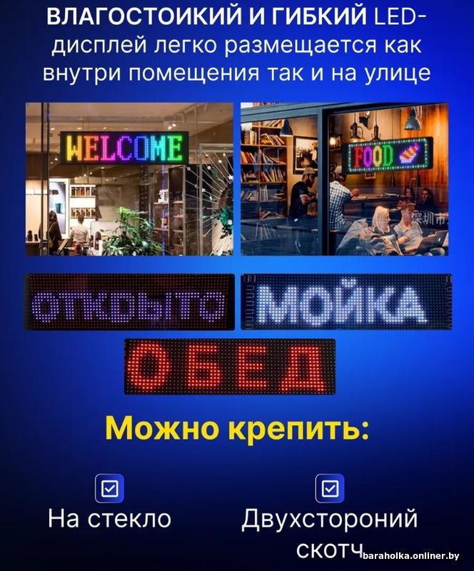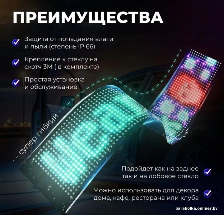 Тонкая Цветная гибкая бегущая строка для удобной и быстрой смены информации через приложение. Возможность настройки текста и графики на матрице через BlueTooth.