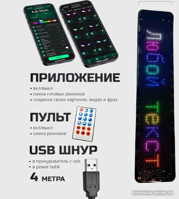 Гибкая бегущая строка Led Matrix 5в USB Type-C 4 метра кабель