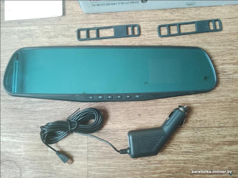 Комплект: зеркало-регистратор, зарядное от прикуривателя, универсальное крепление на салонное зеркало