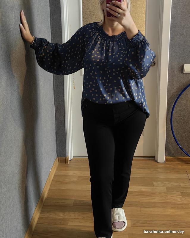 Фото 1-5 Блузка р 52-54 новая, очень красивого синего асфальта цвета. Рукав спущен очень красивый , можно делать как 3/4 так и длинным.