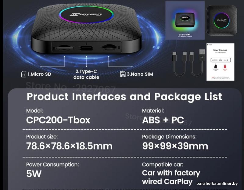 CarlinKit CPC200-Tbox CarPlay Android 13, Процессор SM6225 8 ядер, 8 ГБ ОЗУ + 128 ГБ ПЗУ, поддержка 512 ГБ TF,