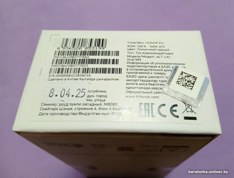 Продается недорого НОВЫЙ телефон HONOR x7c 6гб/128гб, цвет полуночный чёрный, на гарантии до 19.04.2026г.