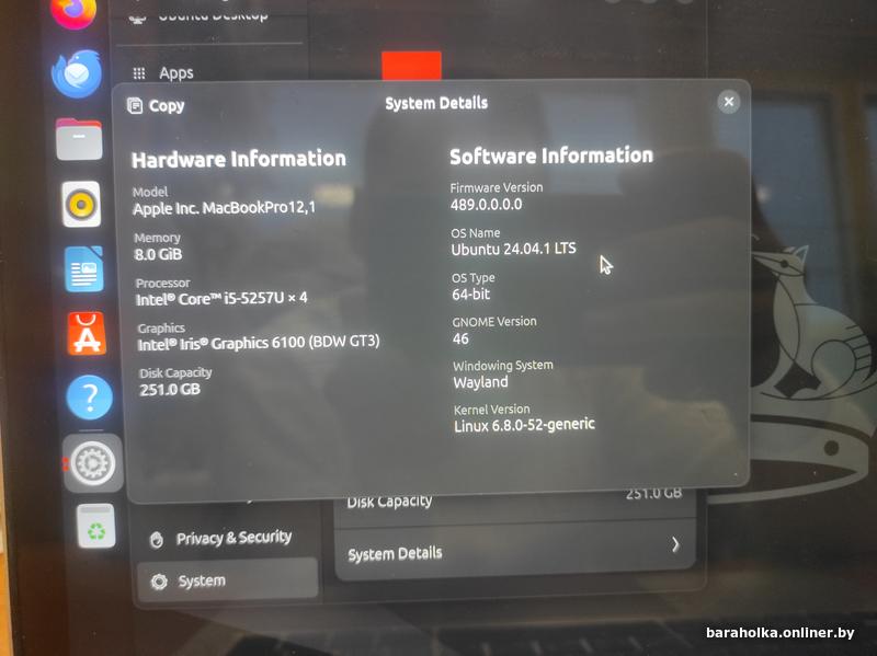 MacBook Pro 2015 8/256Gb. Состояние на фото. В комплекте оригинальное ЗУ. Из ICloud вышел. Сейчас установлена ОС Sonoma. Батарея 5ч держит. Смотреть с 10-17 на Машерова 25, в другое время-по договоренности