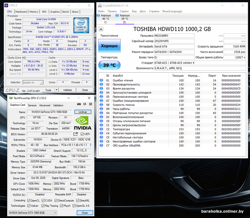 • видеокарта NVIDIA GeForce GTX 1060 6GB GDDR5 (P106-100 6GB)