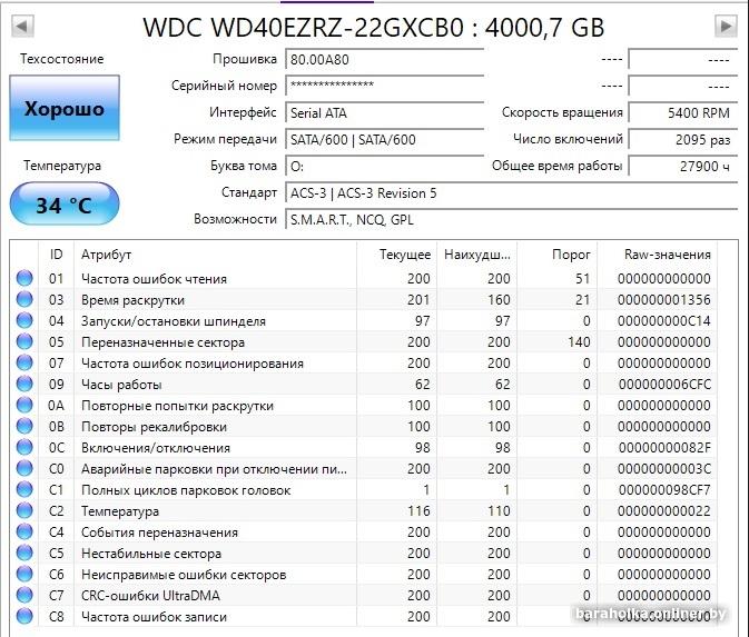 Диск работал 2 года в компьютере и ещё 2,5 года – в сетевом хранилище. Никаких проблем в работе не было.