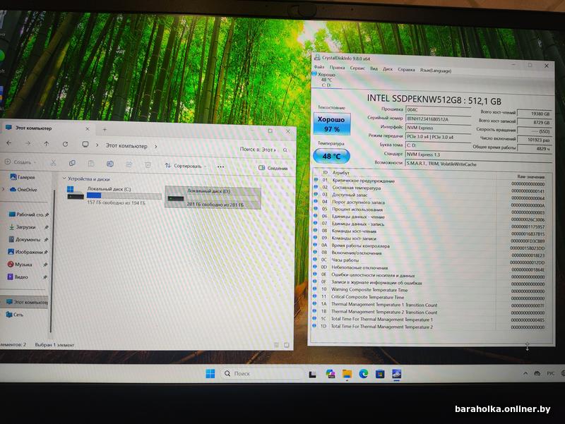 Продам ssd m.2 512Gb рабочий, разбит на два раздела, установлена винда 11, готов к работе