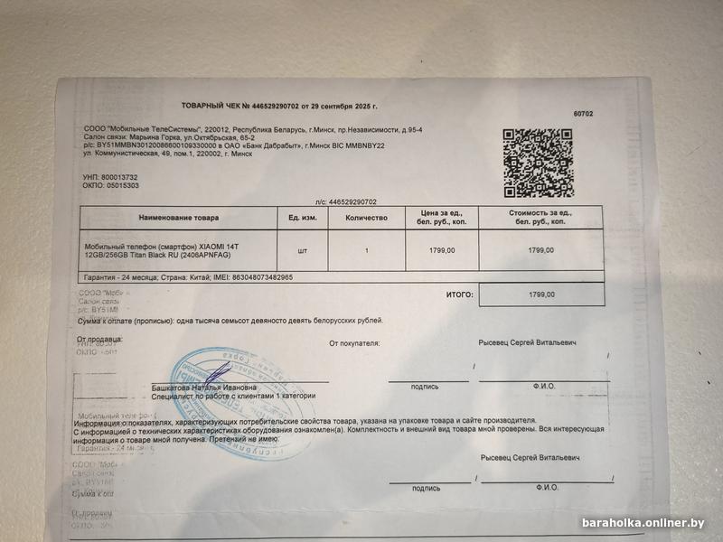 Продам телефон куплен 29 сентября 2025