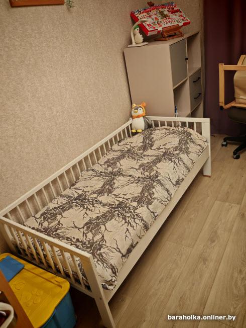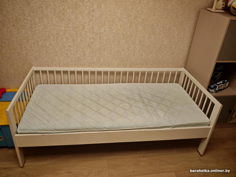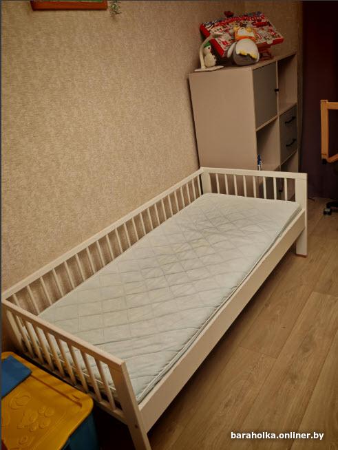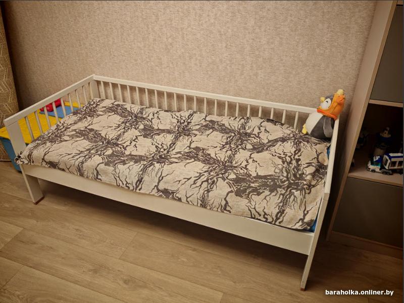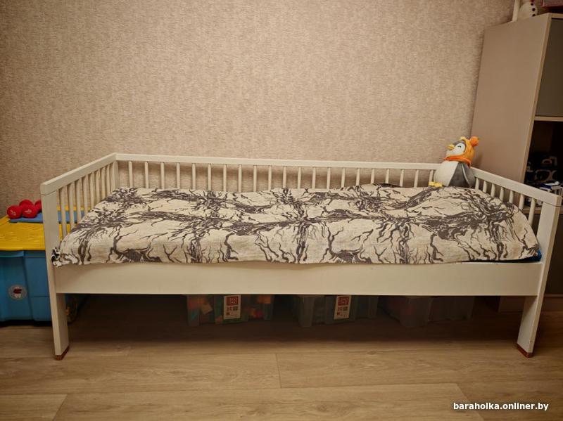 Продаем кровать детскую 70x160 ИКЕА ГУЛЛИВЕР. Белая. Матрас и бортик в комплекте. Легкая. Состояние хорошее.