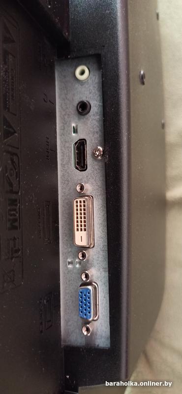 Появилось темное пятно (засвет) на фото - проблема с подсветкой. Иногда включается и работает без него. В остальном отличный монитор: состояние очень хорошее, изображение, цвета и яркость тоже, все выходы присутствуют и работают. Кабеля в комплекте.