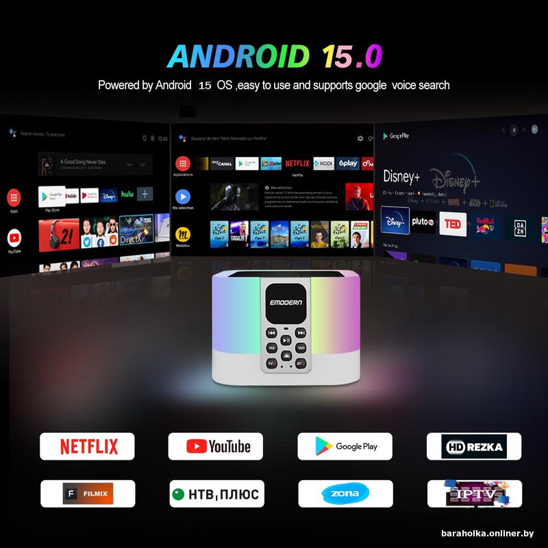 Смарт ТВ комбайн EMODERN Z1 Mix обеспечивает высокую производительность и стабильную работу на базе операционной системы Android 15. Благодаря поддержке стандарта видео декодера 4K и разрешению высокой четкости, вы сможете наслаждаться кристально чистым изображением.