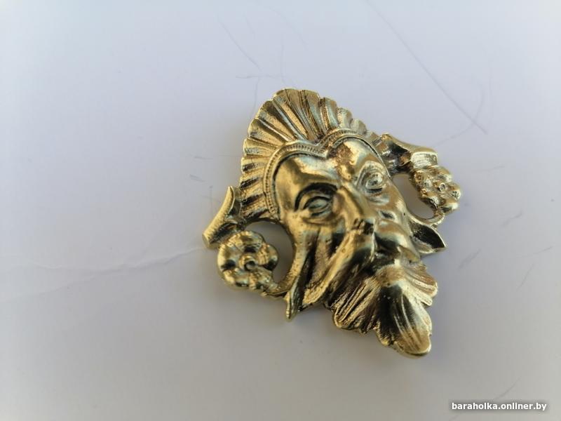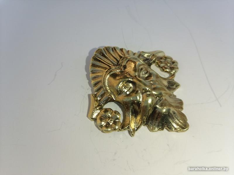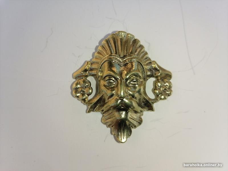Антикварная накладка на мебель, латунная с резьбой и болтом, оригинал не китай, размеры 50мм на 45мм, крепилась наверное на округленную поверхность, так как сзади имеет искруглённый паз.