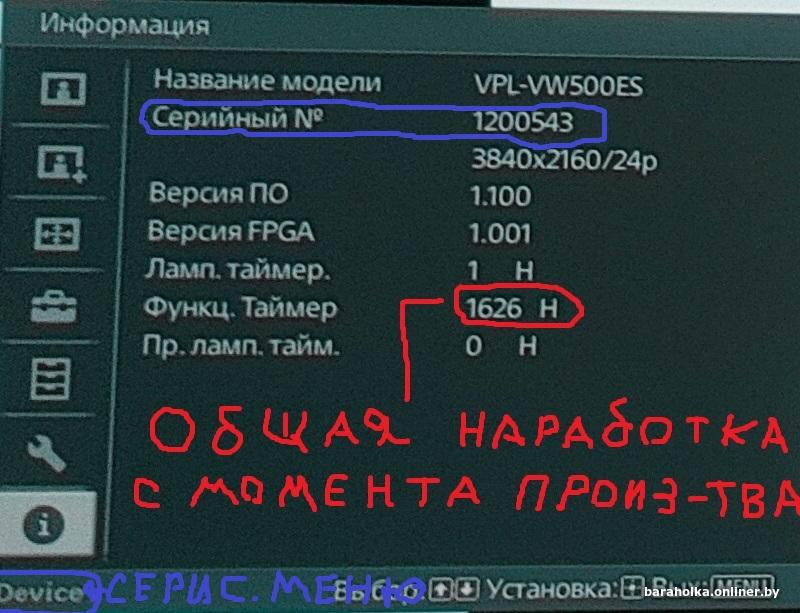 Проектор проработал меньше 1700 часов, фото делал в сервисном меню где видно всю наработку с момента производства и это не стирается, если выйти из сервис меню то будет видно только таймер лампы который можно обнулить.