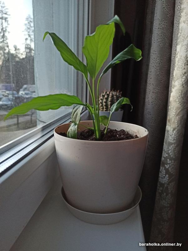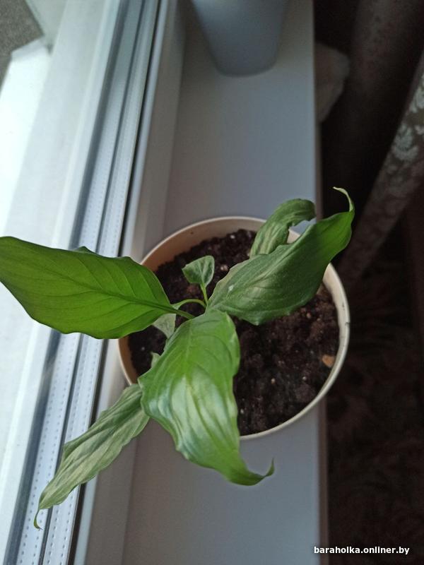 Молодой саженец спатифиллума пересаженный 14.03, высотой ~ 10 см