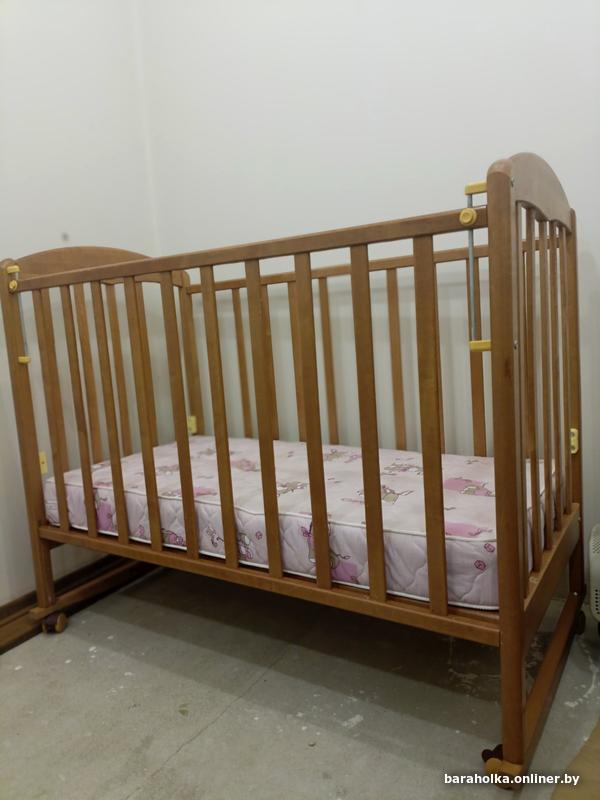 все вещи б\у в хорошем состоянии. Стул 70 рублей. Кроватка с матрасом 70 рублей. Горка для купания 5 рублей. Мобиль музыкальный на кроватку 15 рублей.Минск