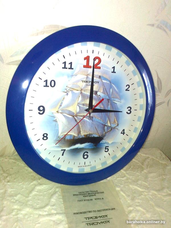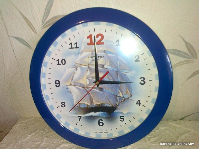 Часы настенные кварцевые TROYKA пр-ва РБ, не Китай. Рабочие. Диаметр 29 см, ширина обода 3 см, диаметр циферблата - 23,5 см. Ход плавный,бесшумный. Изображение - парусник. Цифры крупные. Подойдет в детскую комнату или подростку. Есть паспорт. Работает от одной батарейки. Высылаю Белпочтой.
