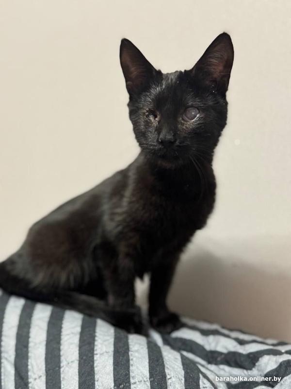 Ей 5 месяцев, она полностью здорова, отлично ориентируется в пространстве, когда находится не на высоких поверхностях, и ходит только в лоток.