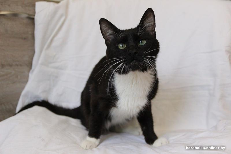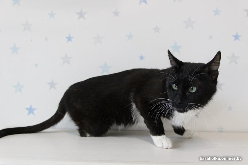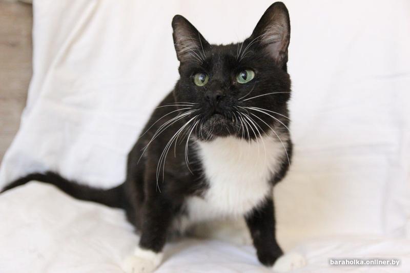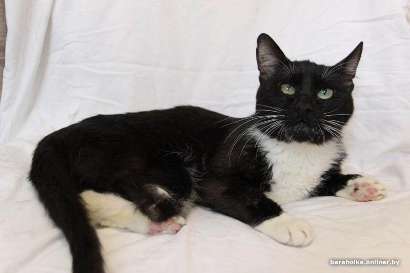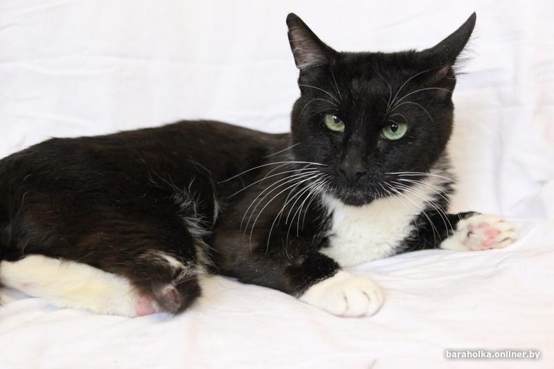 Спасен с улицы. Возраст 5 лет. Немного стеснительный мальчик, нужно некоторое время привыкнуть к новому дому. Очаровательная мурчалка с забавным взглядом. Любит полежать на ручках, быть рядом с человеком, наблюдать. Спокойный и добрый. Любит высокую когтеточку, играет с шариками и удочкой, приучен к лотку с наполнителем. Пристраивается в ответственные руки по договору с ненавязчивым отслеживанием дальнейшей судьбы.