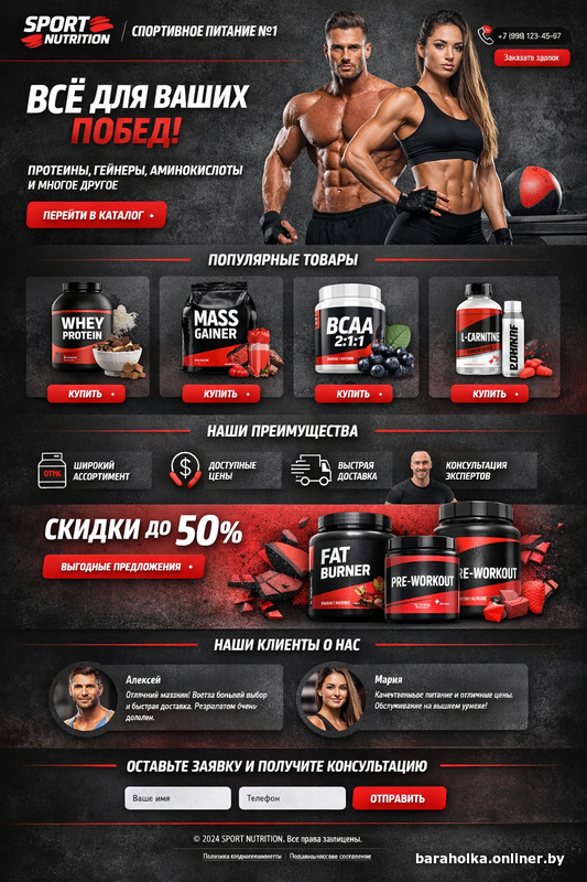 Лендинг одностраничный на 3 - 6 экранов - от 100 бел. руб. до 150 бел. руб.