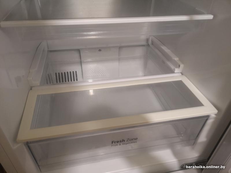 Из минусов: на передней двери есть следы от клетки, вместо оригинальной длинной полки над зоной свежести две неоригинальные полки в стык.