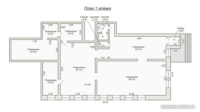 • Высота помещений: 2,90 м