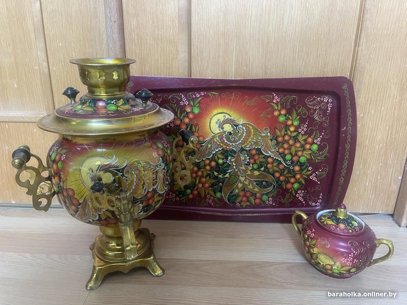 Самовар 3 литра объем. Так же поднос и сахарница. Ручная роспись по индивидуальному заказу. Есть выход для провода. Все на фото.