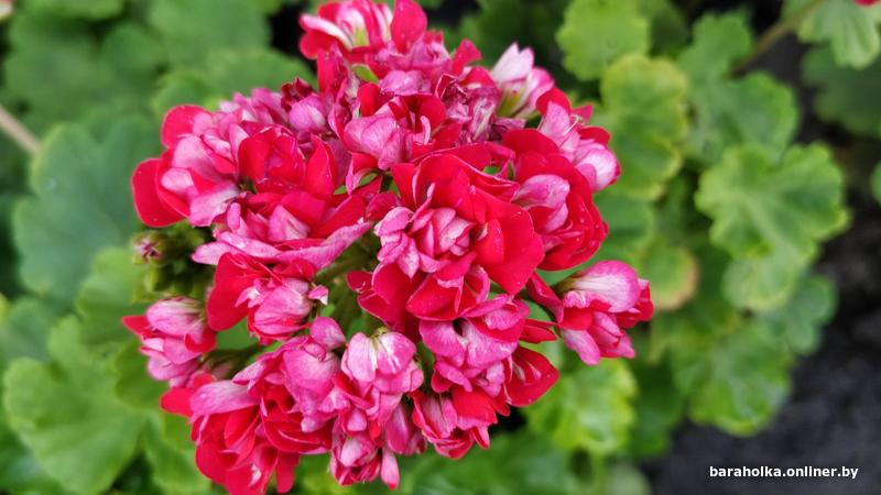 В продаже молодые нецветущие кустики розебудной герани красно-белой окраски, - сорт Селеста Джулия. Высота растений составляет 15-17 см.