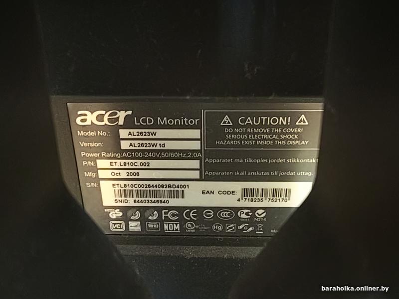 Продам б-у монитор Acer AL2623W в тусклом состоянии, с точечным повреждением экрана.