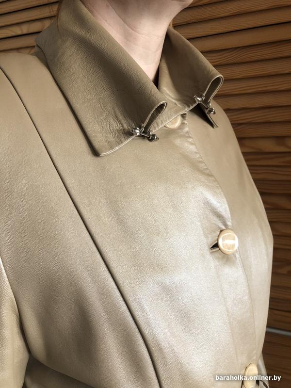 Плащ из натуральной кожи. Состояние хорошее. Светло-бежевый перламутровый. Внутри на подкладке имеются несколько зацепок (на фото). Возле кармана небольшой дефект (на фото). Сама кожа без дефектов, чистая. Можно с поясом и без. Район Степянка, Восток, Уручье, Новая Боровая, Тракторный.