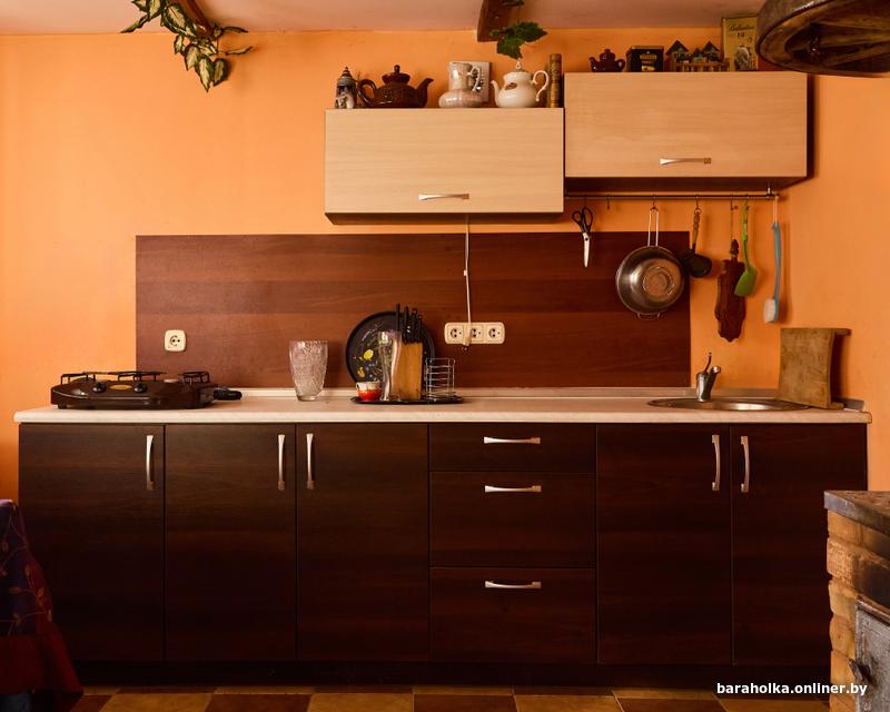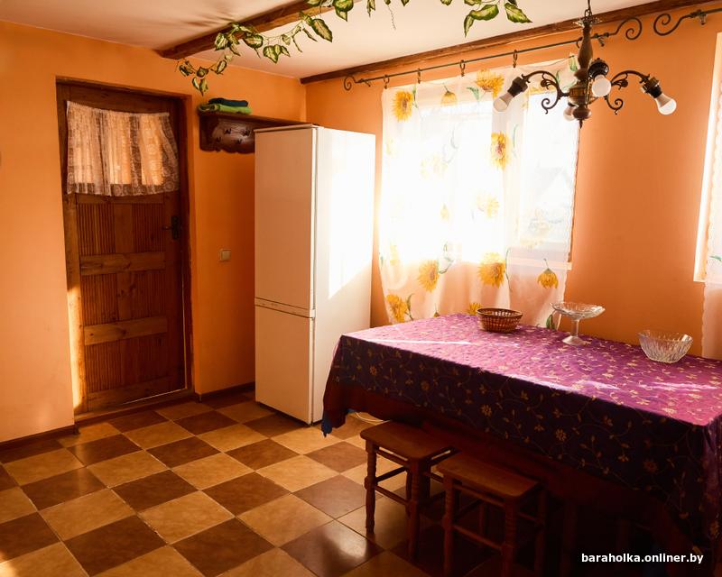 На первом этаже находится подсобка, кухня и одна жилая комната с кроватью. На кухне есть бойлер с горячей водой на 15 литров, большой холодильник, двухкомфоррочная газовая плита, а также кирпичная дровяная печь для приготовления пищи.