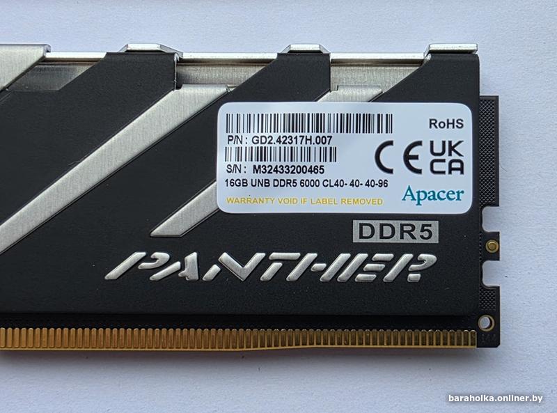 Оперативная память Apacer Panther DDR5 6000 МГц AH5U32G60C5127BAA-2