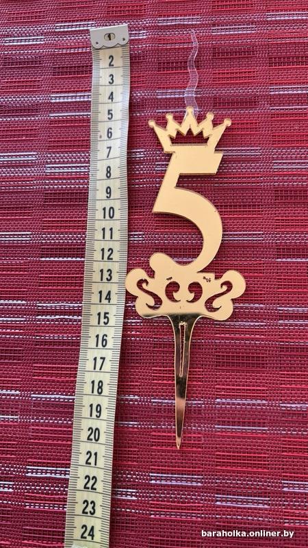 Продам топпер свеча на 5 лет, с короной. Новый, не использовали. Цвет золотистый. Замеры на фото.
