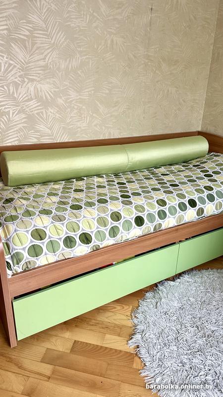 + непромокаемый наматрасник. Покрывало и подушки в подарок. Состояние идеальное. Выдвижные полки.