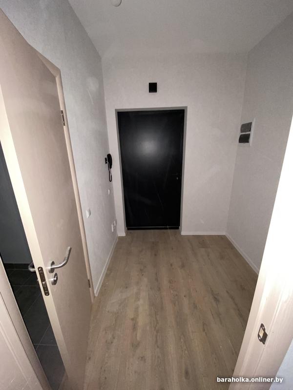 Кухня-гостиная,прихожая,спальня:пол ламинат,двери с фурнитурой,стены — белые обои и окрашенный потолок, что позволило сохранить высоту потолков.Санузел: плитка на полу, акриловая ванна, смесители,умывальник,унитаз.Санузел-совмещенный, лоджия.